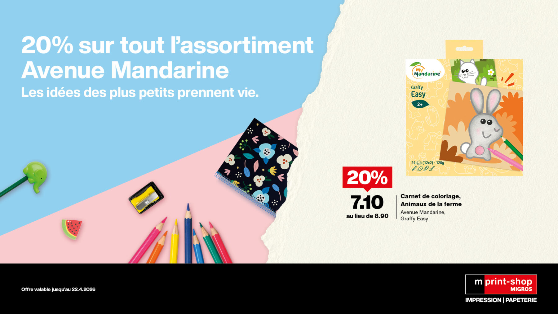 Profitez d’une réduction sur tout l’assortiment « Avenue Mandarine » jusqu’au 22 avril 2026.